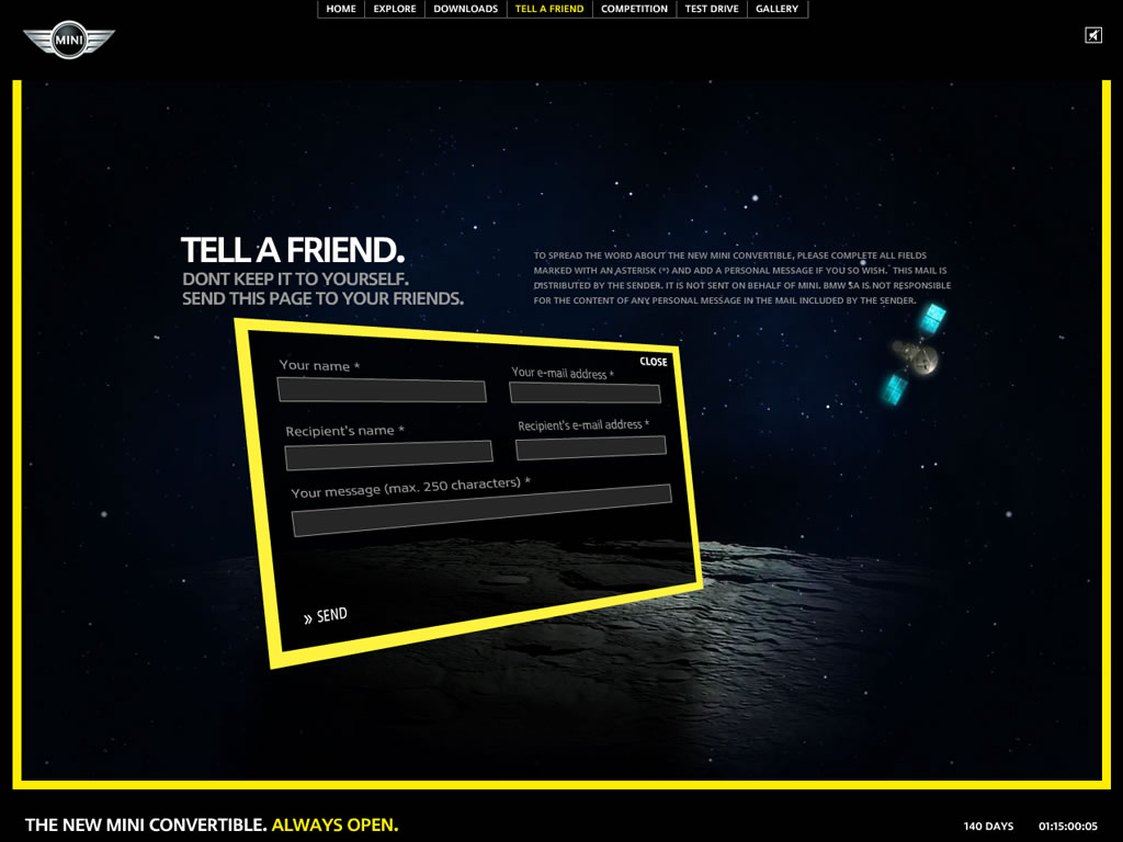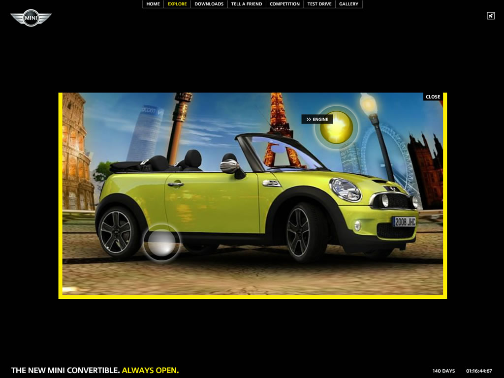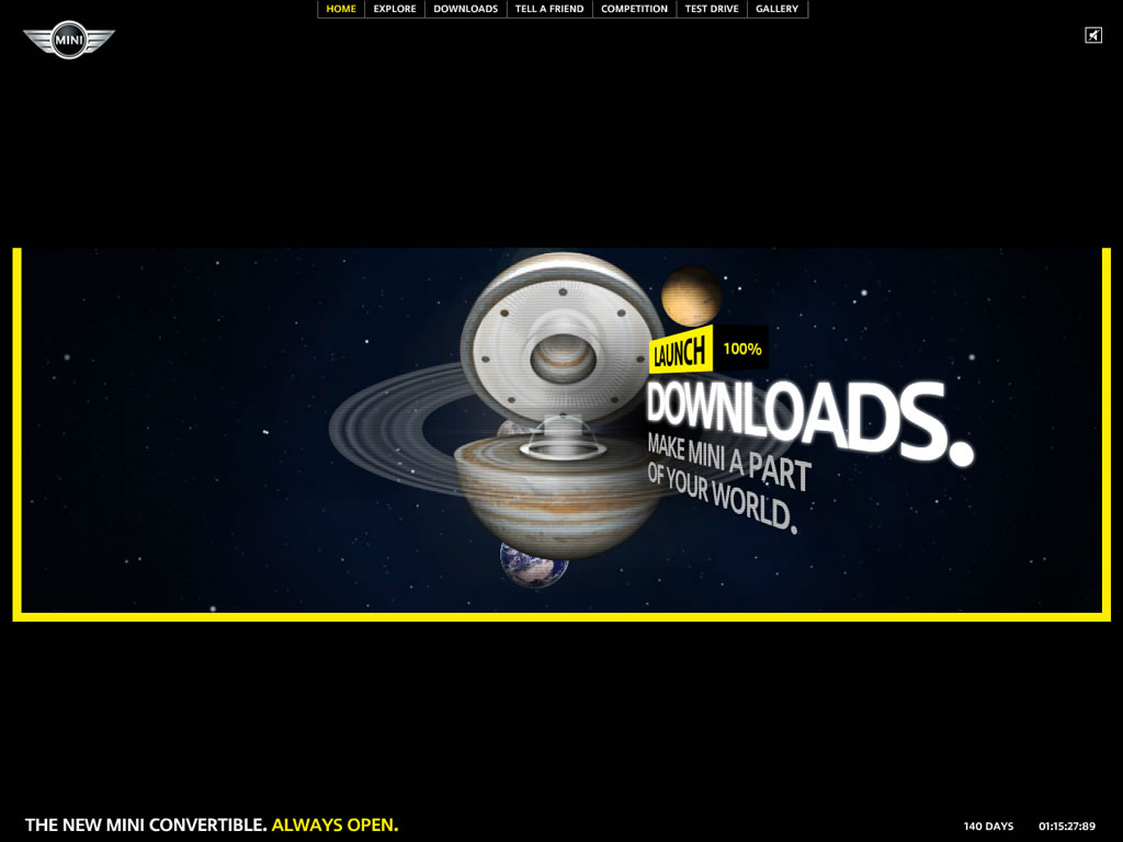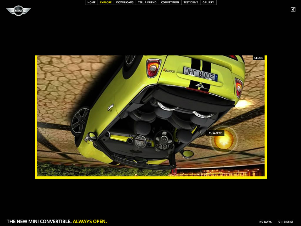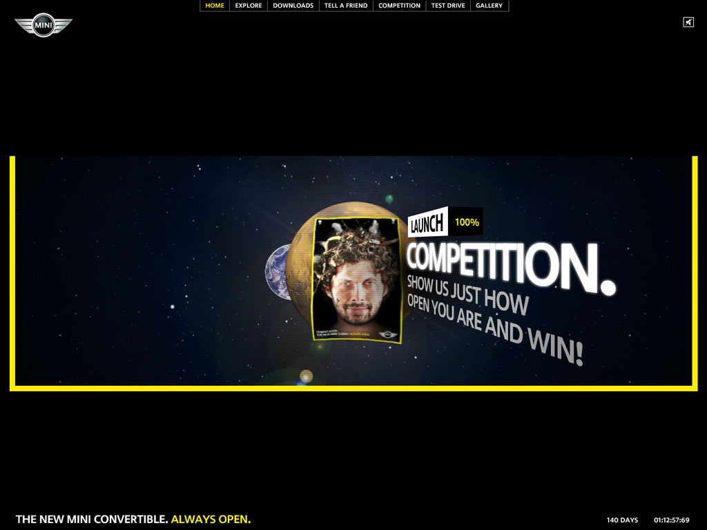 A site designed to be as open as the new MINI Convertible itself, featuring an intuitive 3D navigation system and soundtrack by Goldfish.