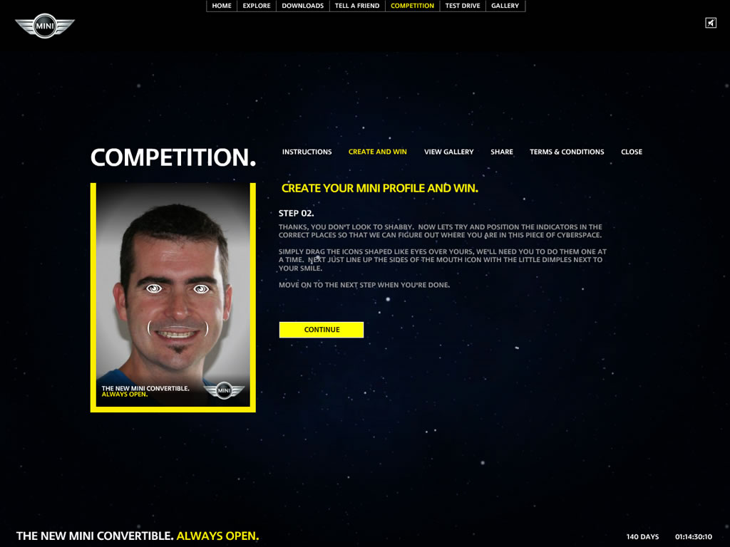 The site includes a mind-boggling 720 degree view of the MINI with a profiling quiz that evaluates how ‘open’ you are and creates a MINI poster out of your face that ties in with the above-the-line campaigns.