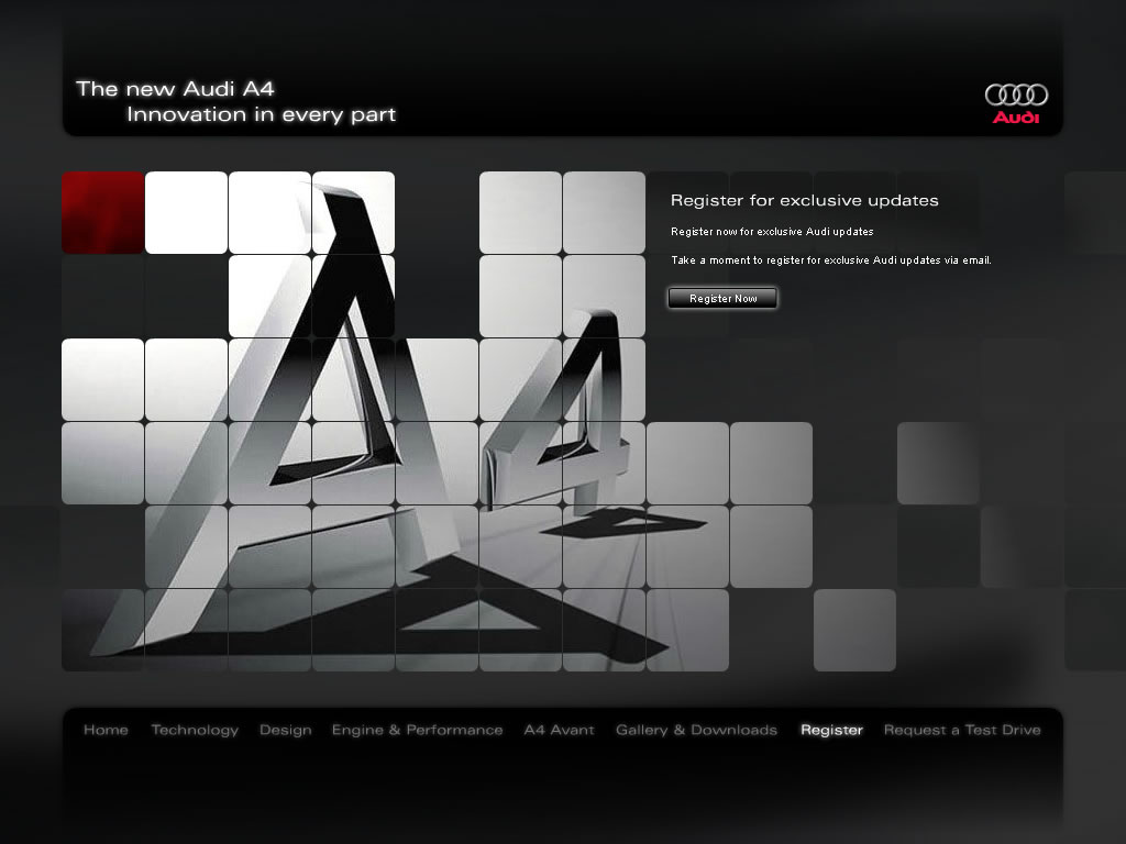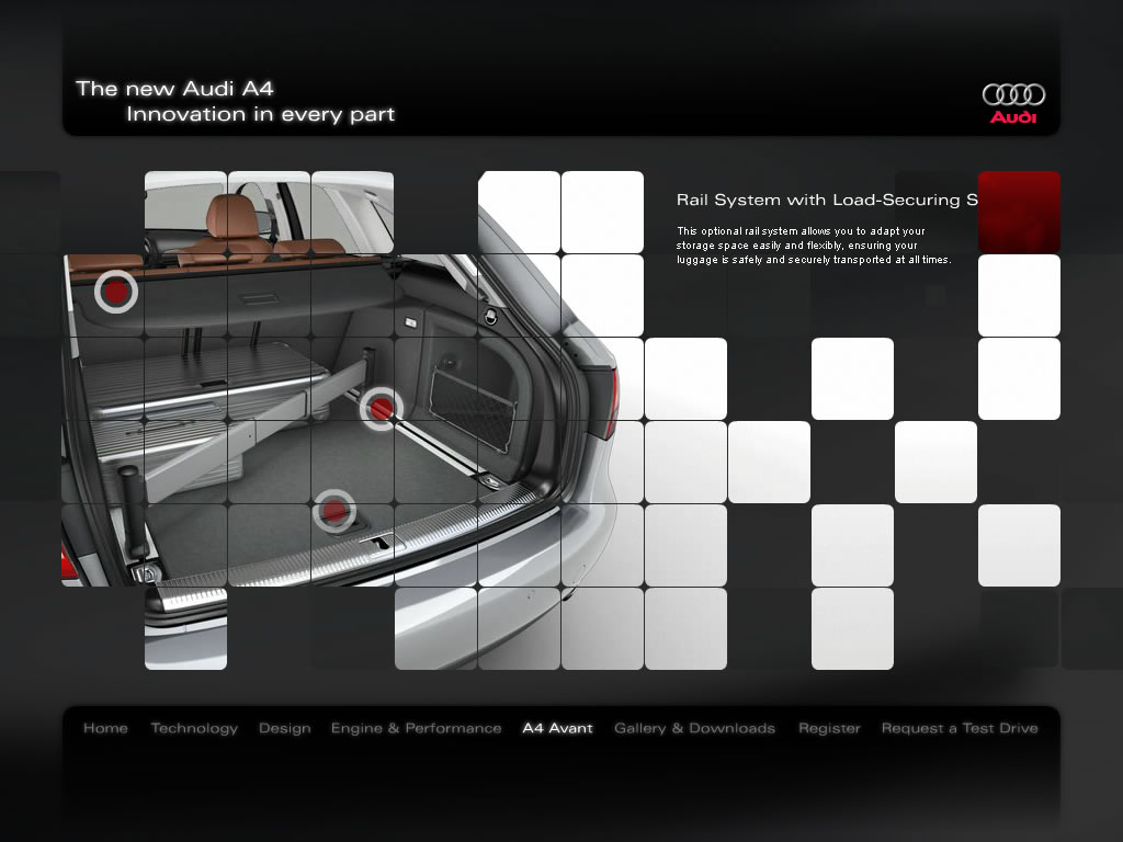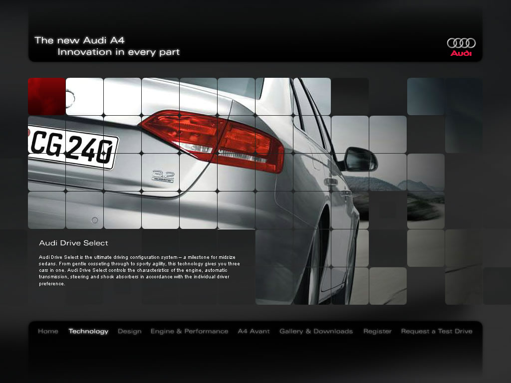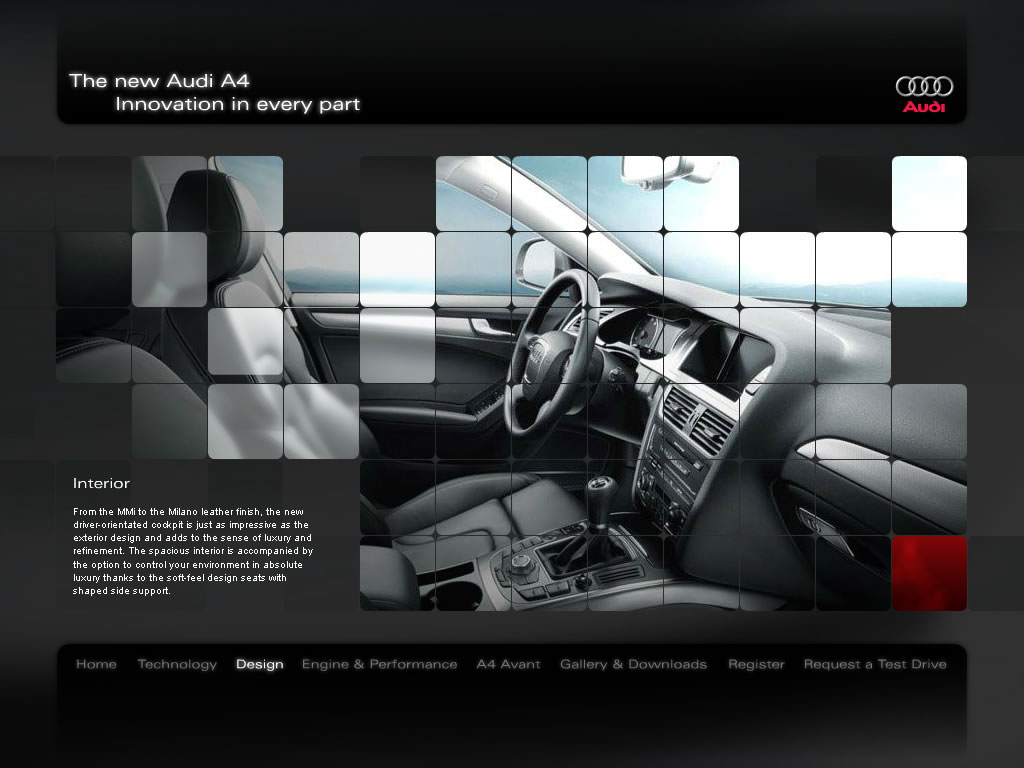 With the new Audi A4 at the forefront of innovation - it made sense to make use of an innovative menu and display system that features informative and downloadable content about the new Audi A4 range.