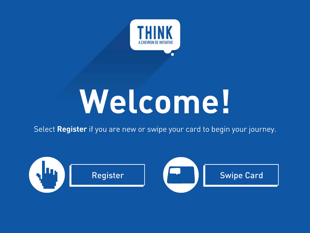 Touch screen terminals were set up countrywide to help Chevron staff learn more about safety initiatives and reward them for successfully completing monthly quizzes. Each terminal is equipped with card readers to aid in registration, identification and rewards. The software was developed to include detailed reporting tools in order to provide insights on where further safety training initiatives could be increased in different departments.