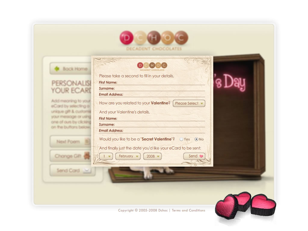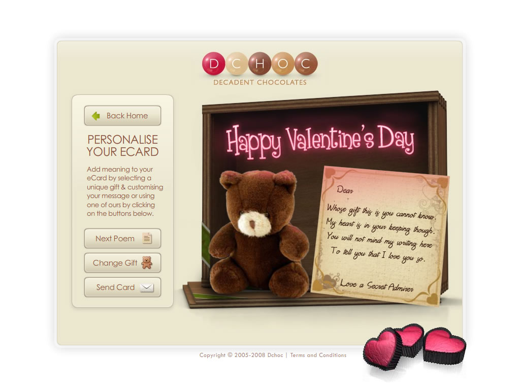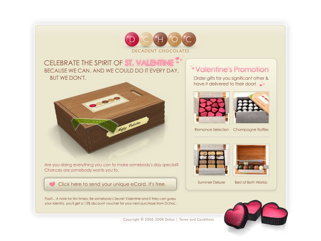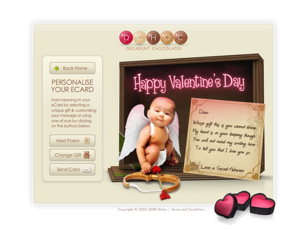 The app also allowed users to send secret valentines and purchase decadent chocolate from their online store.