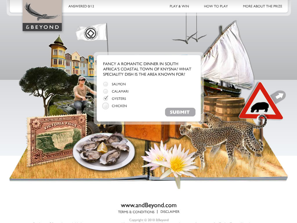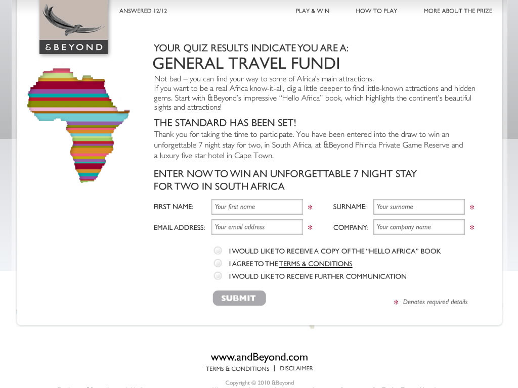 An online flash quiz and competition entry mechanism supporting the launch of the “Hello Africa” travel book from &Beyond.com