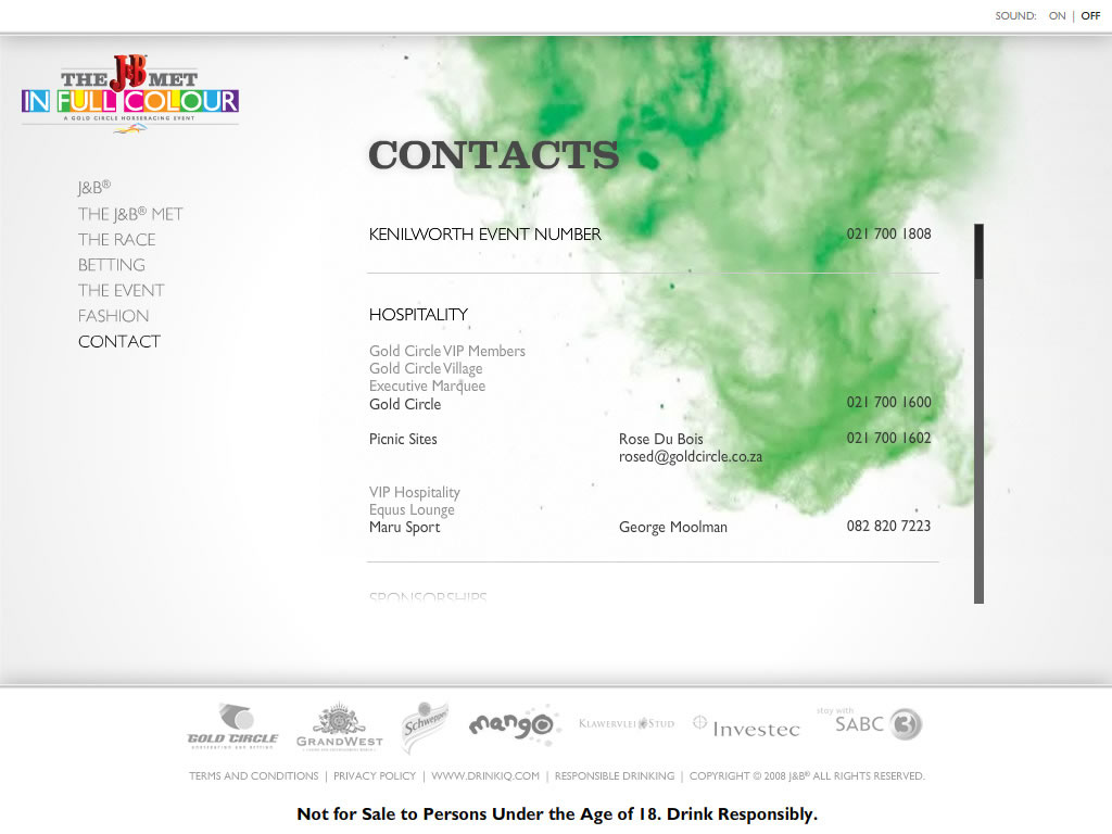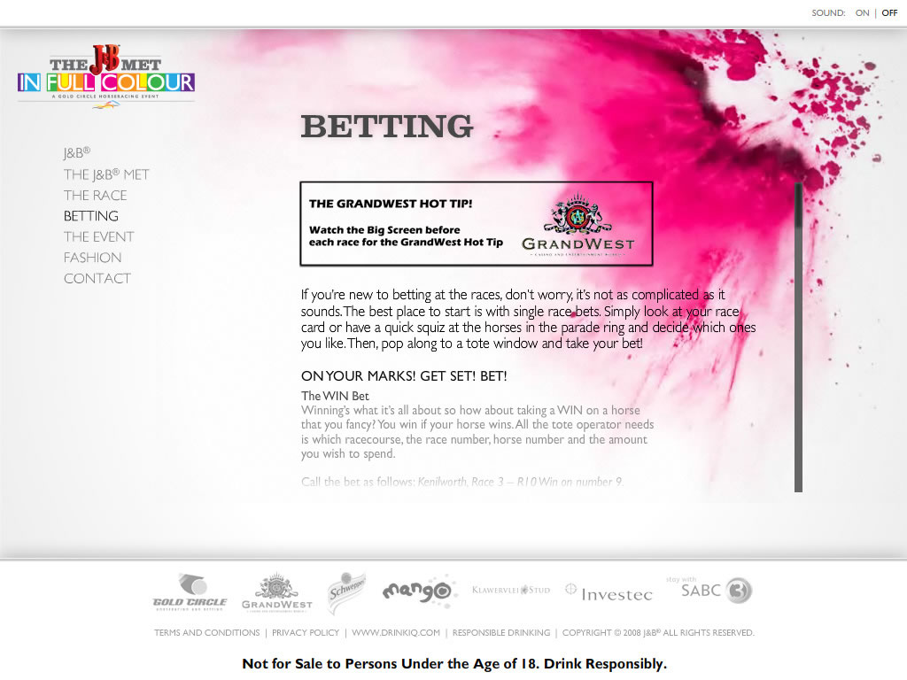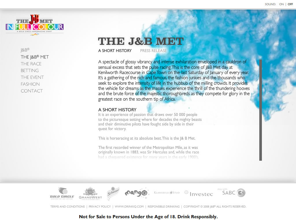 The 2010 J&B Met website was nothing short of an explosion of light and colour to fit the year’s vibrant theme of ‘In Full Colour’.