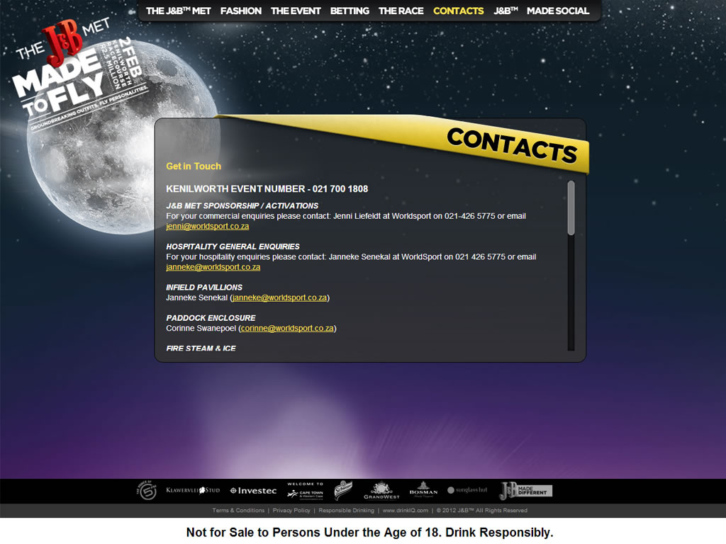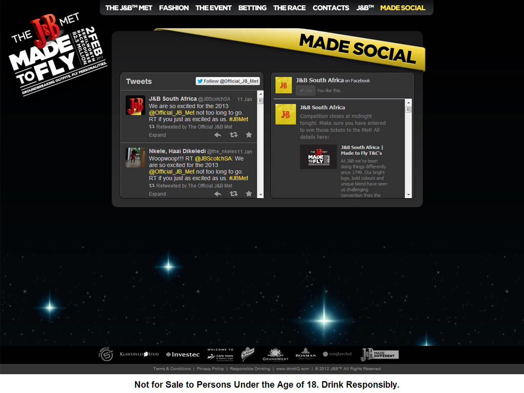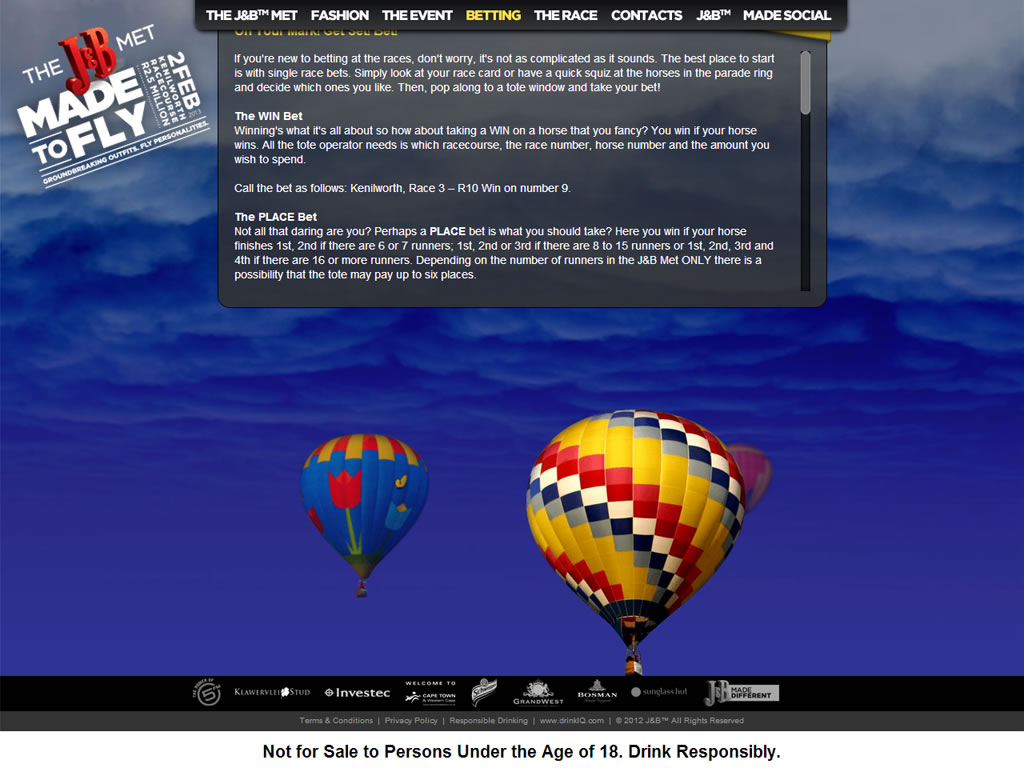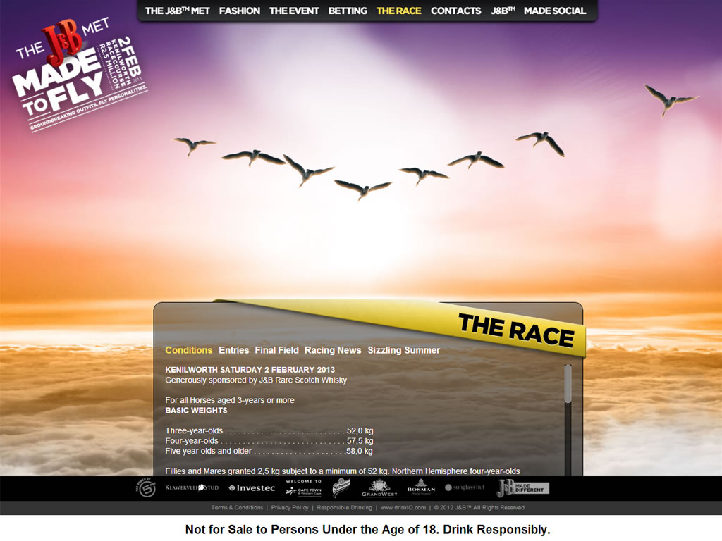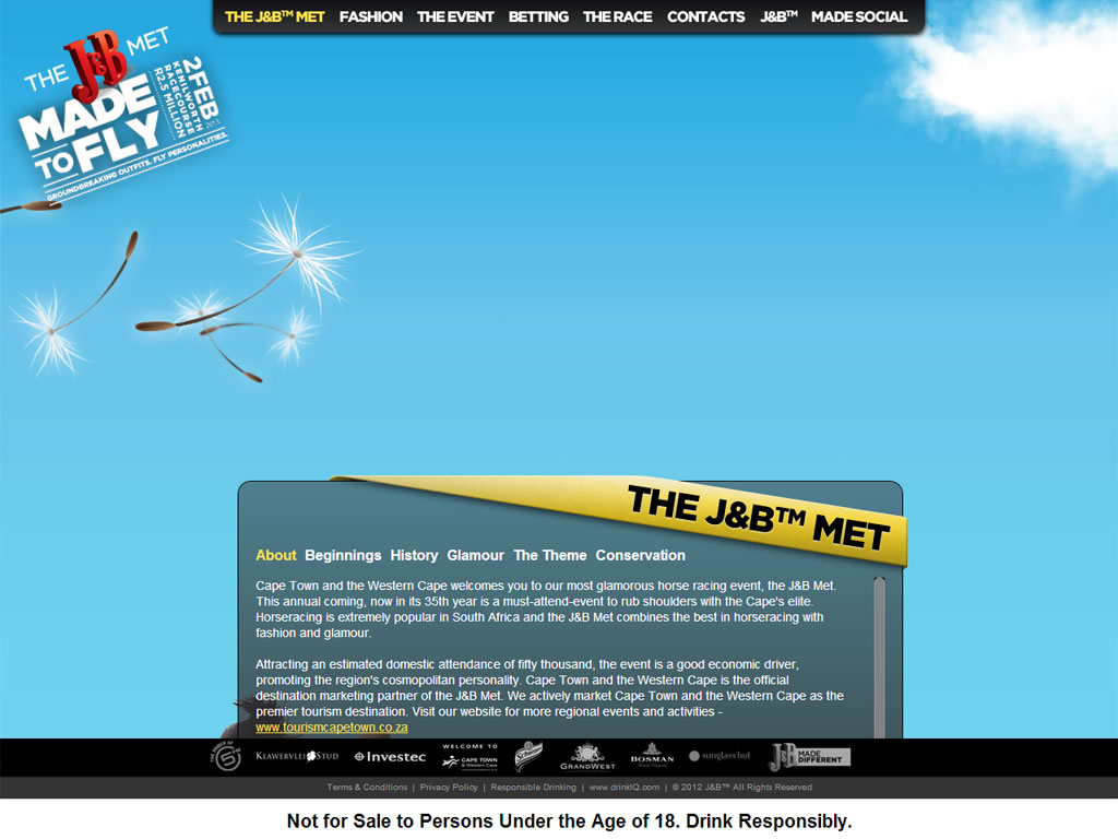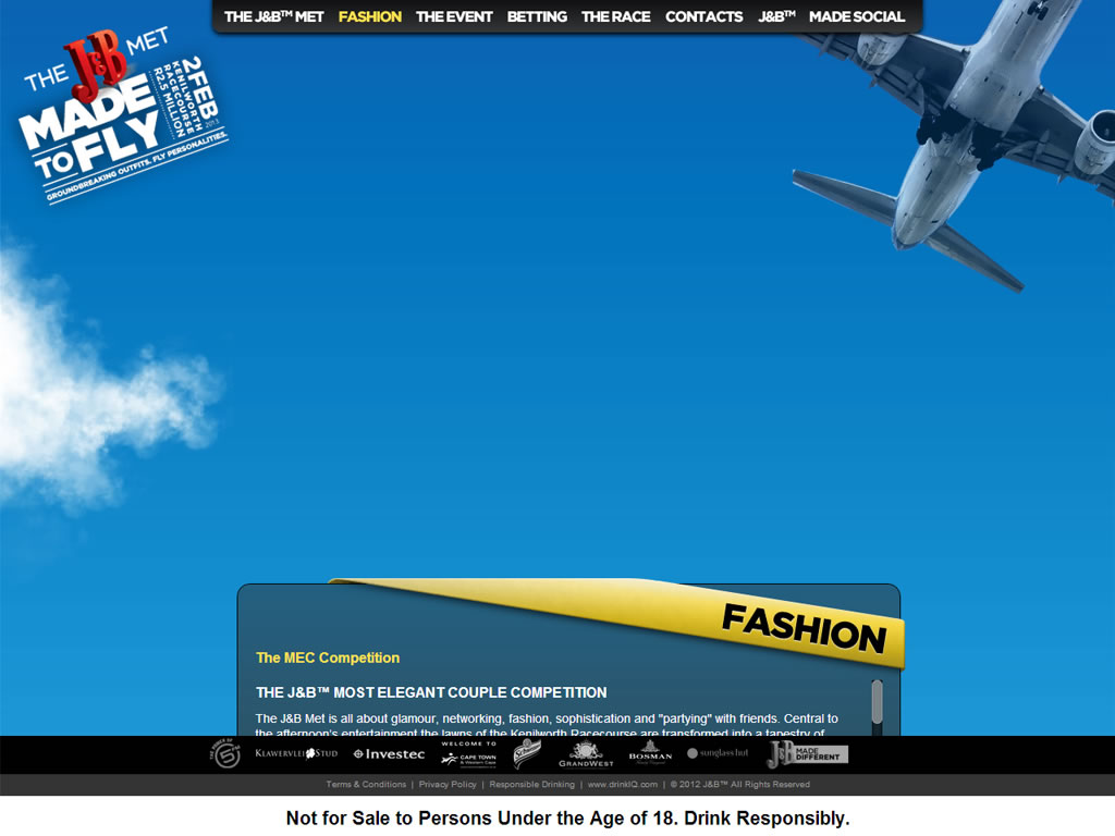 Experience the 2013 J&B Met website through a vertical panoramic of HTML 5 goodness showcasing the theme of ‘Made to Fly’.