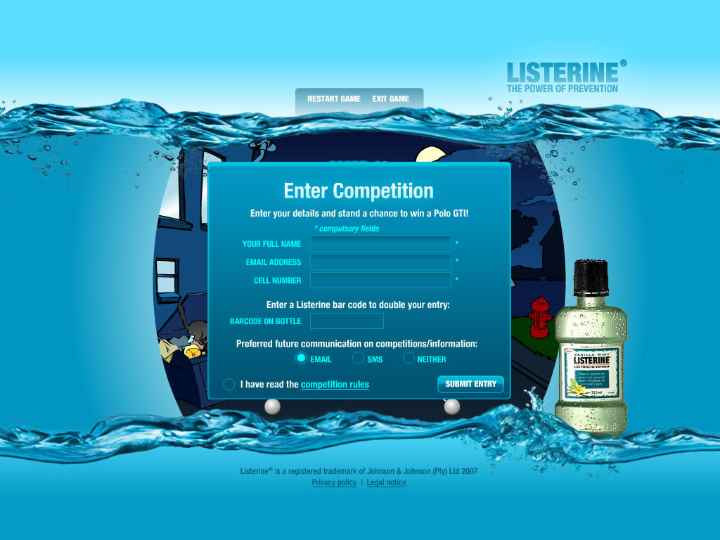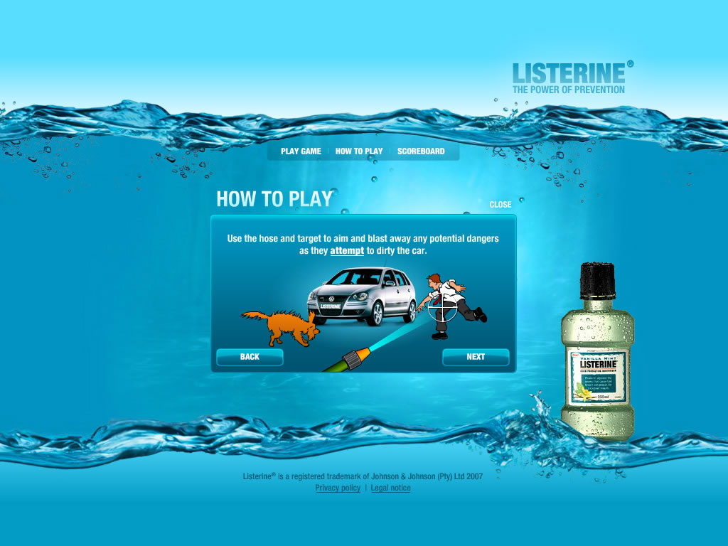 The second in a series of Listerine ‘Blast’ online games where users need to keep a new Polo GTI clean for as long as they can to stand the chance of winning it.