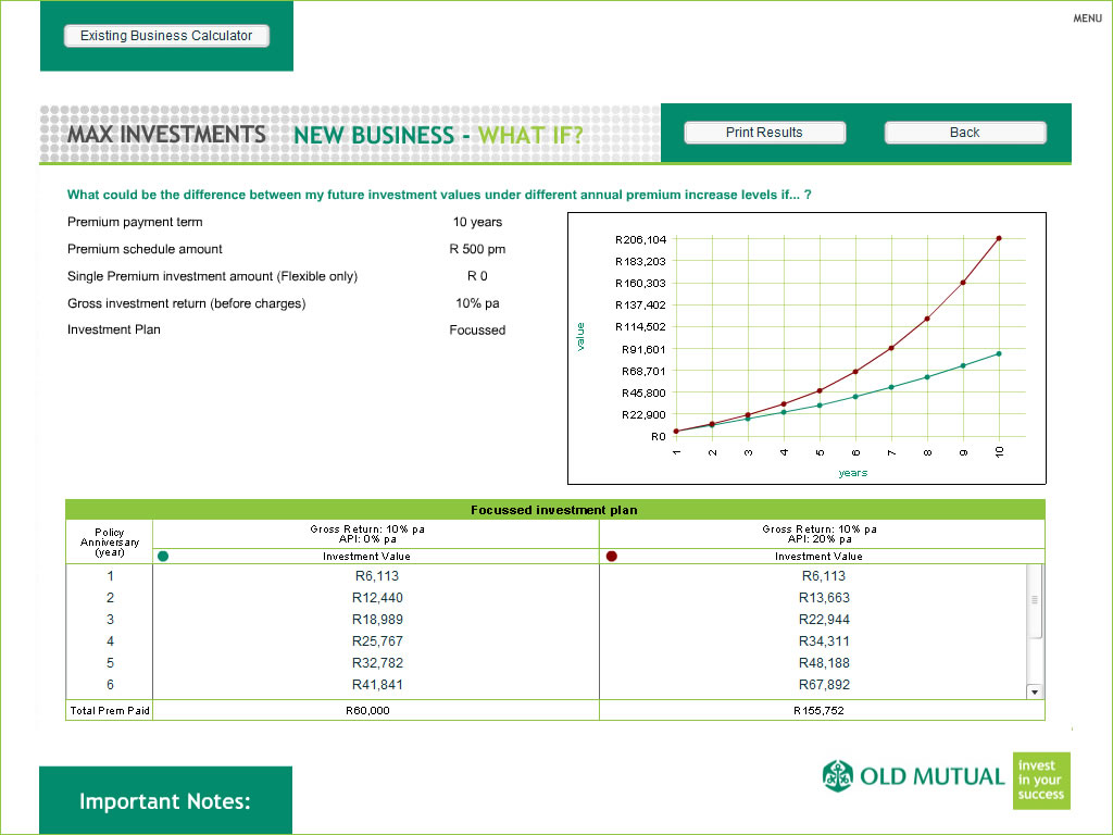 The calculators also provide detailed graphs projecting future earnings as well as the ability to print out an easy to read overview of your personal projection profiles.