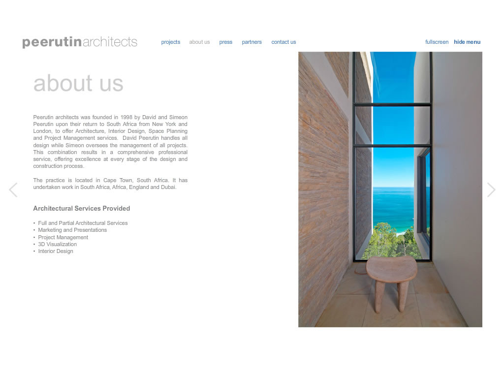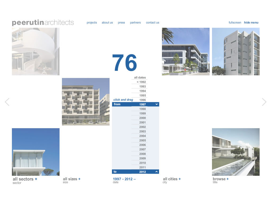 A portfolio site that portrays the professionalism and beauty of the architects’ work and which adapts the property results instantly as you filter your interests.