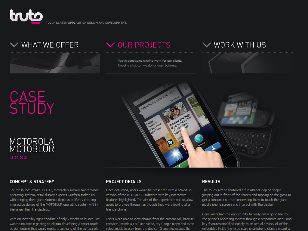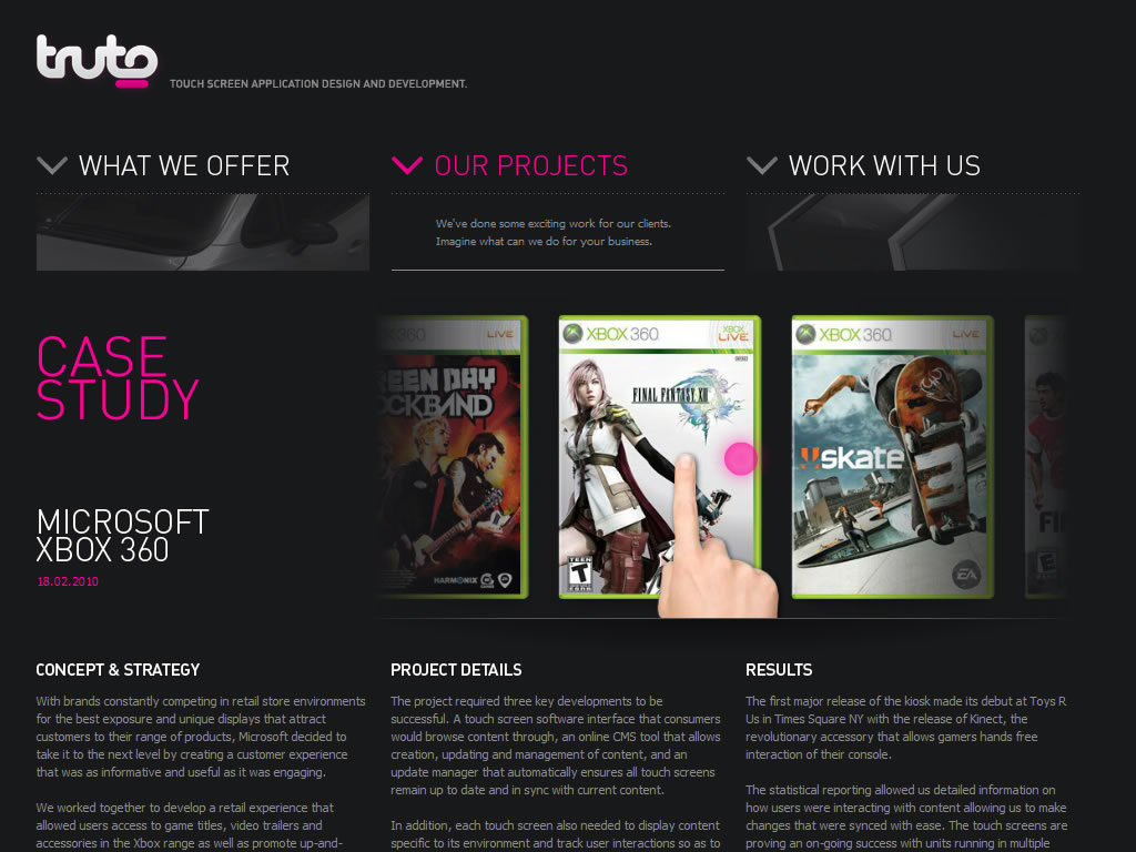 A case-study website for our partners Truto: a leading local touchscreen software development studio with an international client base.