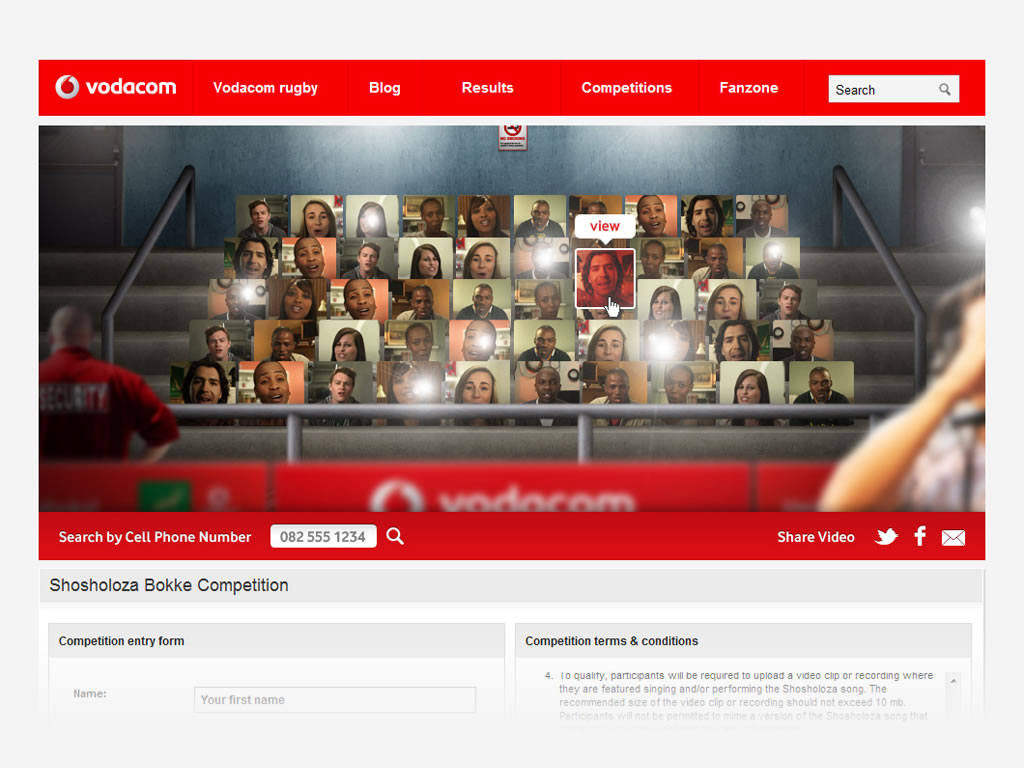 A virtual stadium web tool that allowed fans to browse through uploaded mobile content and watch videos on the jumbo-tron.